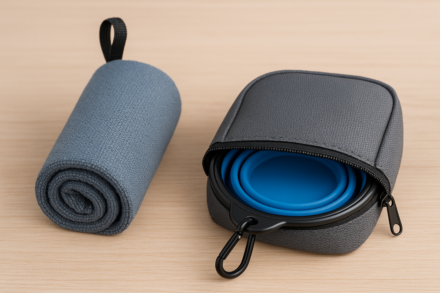 Tuck a microfiber towel and collapsible water bowl in your bag. A quick paw wipe before heading back keeps mud where it belongs — outside the car.