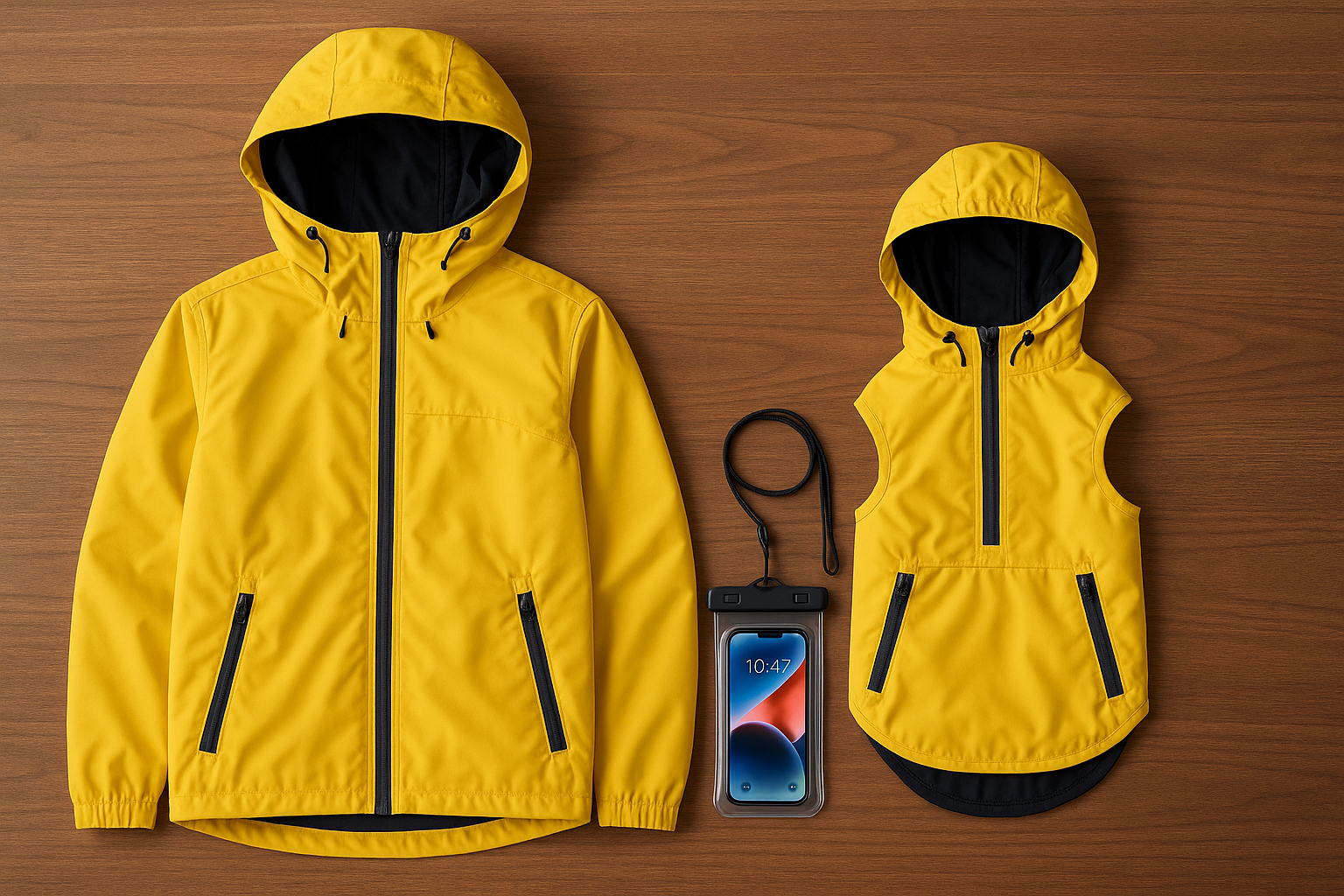 Waterproof jackets for both you and your pup make all the difference. And if you're bringing a phone or camera, keep it protected but ready — those reflections on wet pavement are worth documenting.
